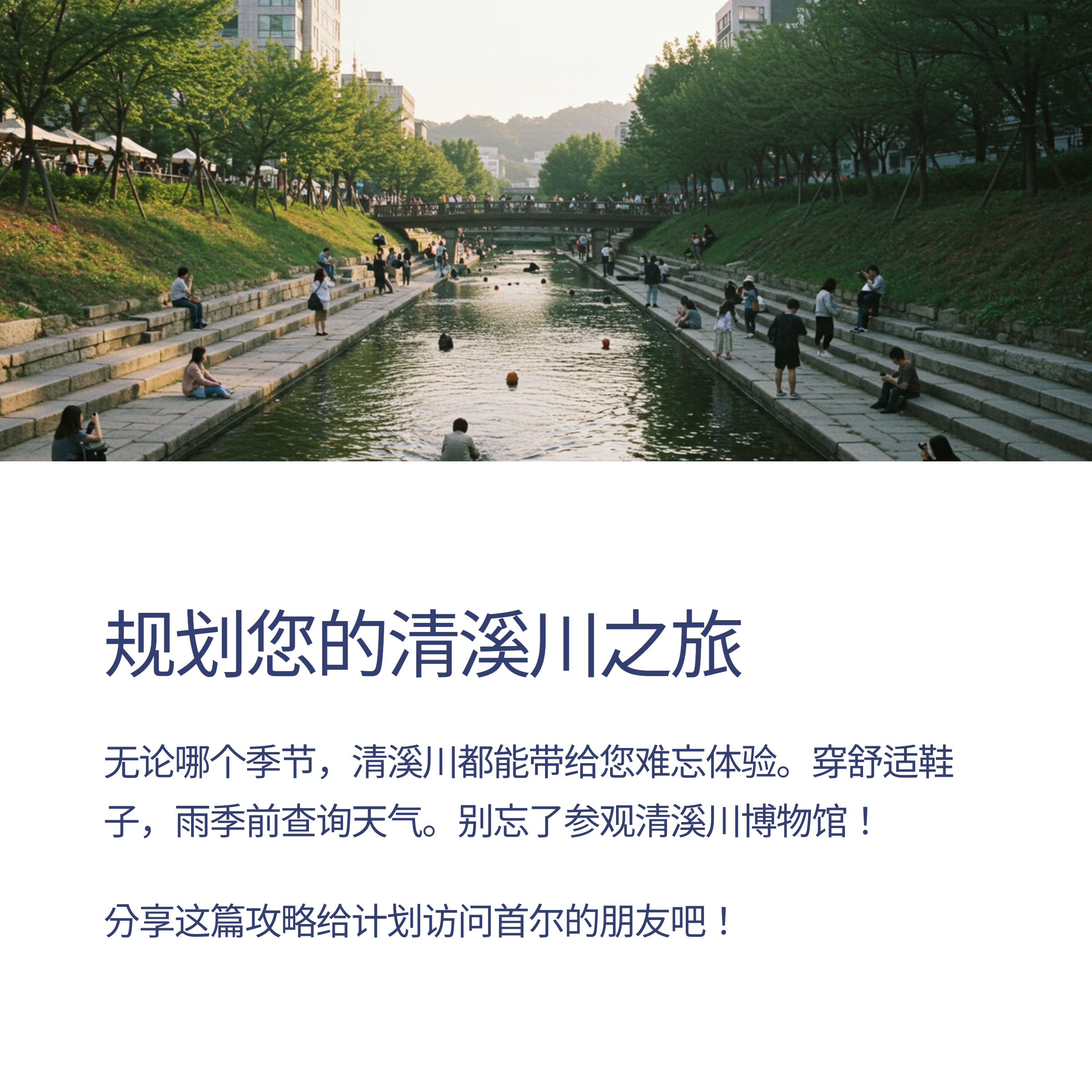探索首尔清溪川最佳散步时间及季节推荐。了解详细路线、交通信息及文化活动,为您的韩国之旅增添独特体验!