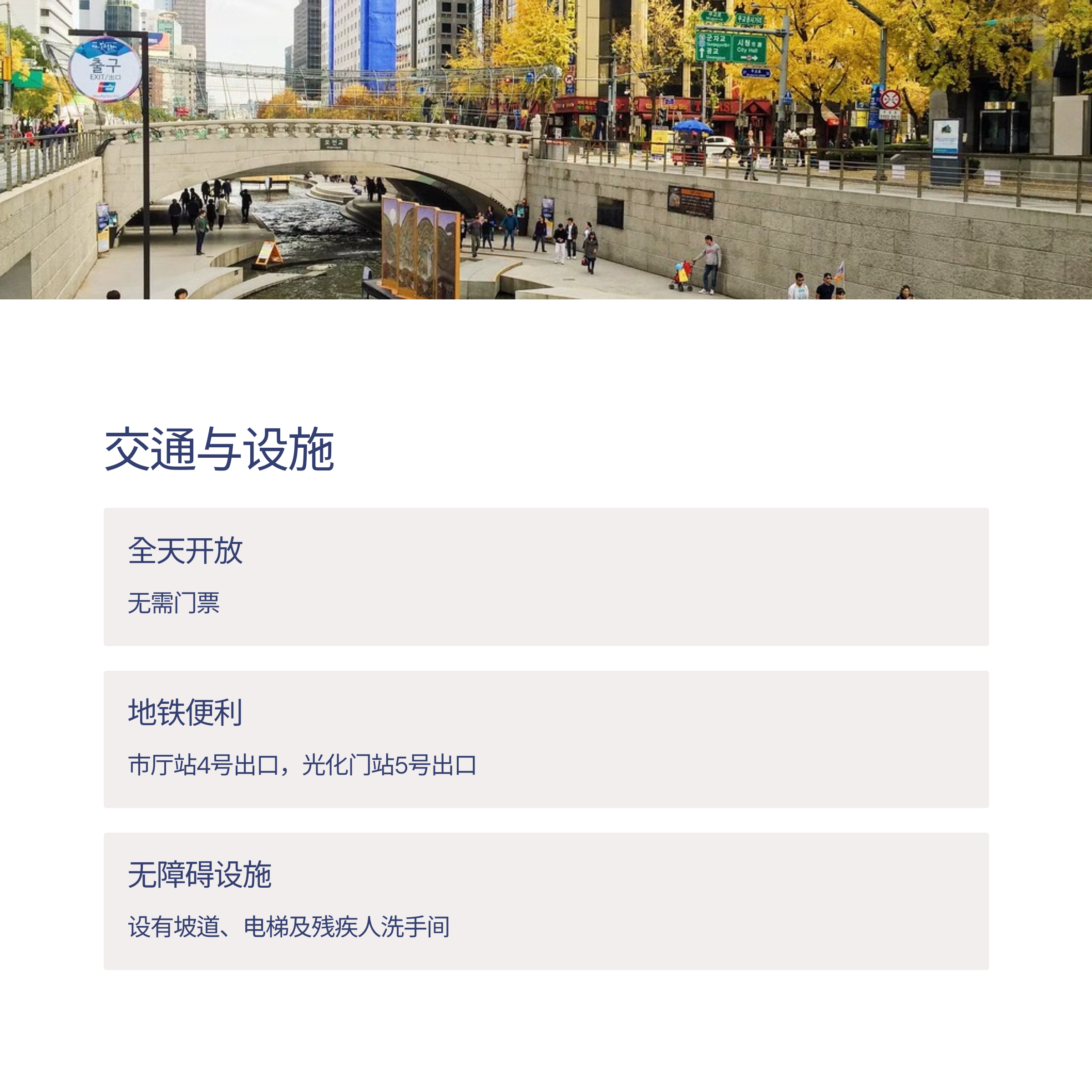 - 清溪川博物馆提供关于历史和修复工程的信息,非常值得一游。