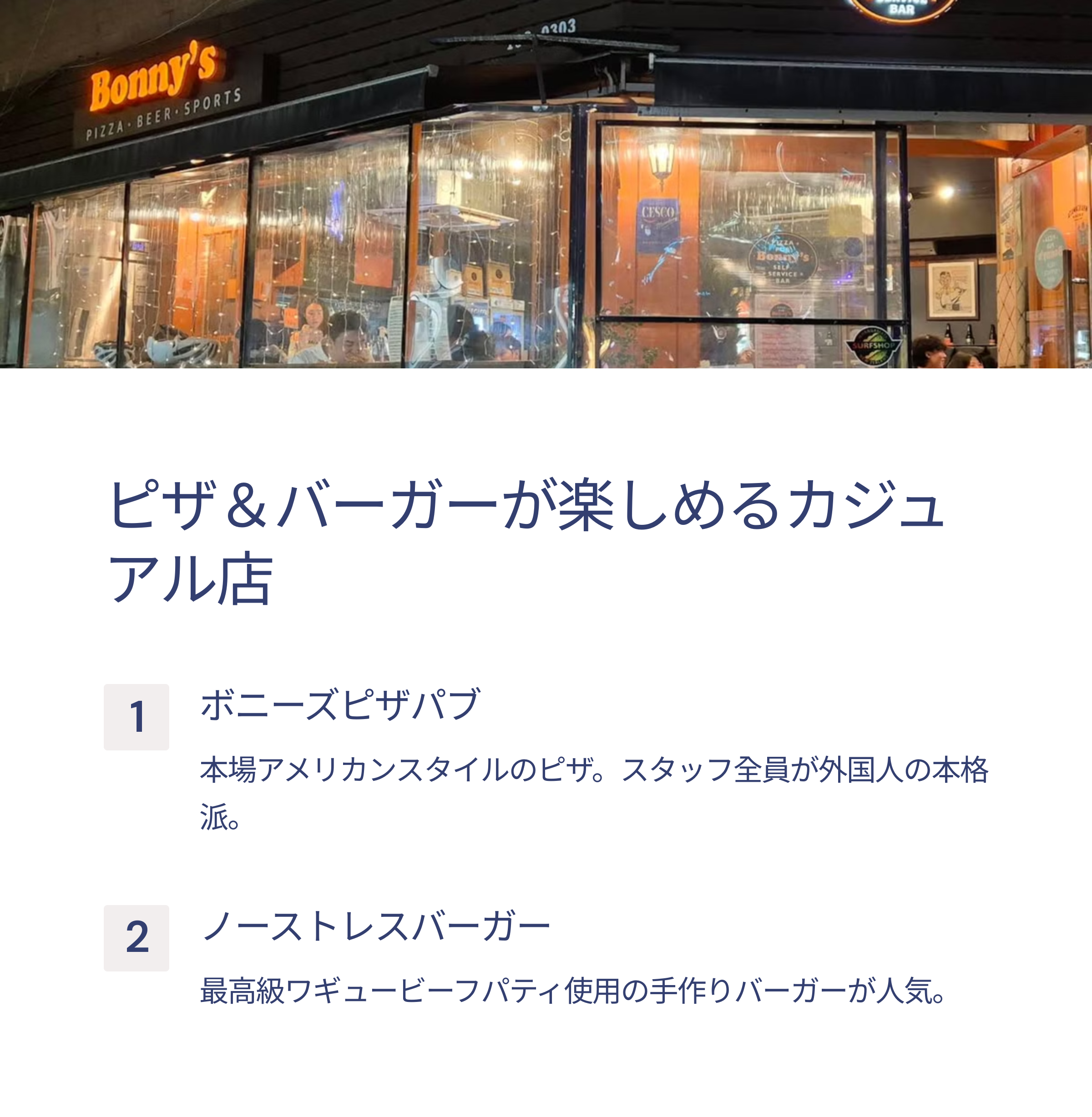 3. ピザ&バーガーが楽しめるカジュアルなお店 🍕🍔