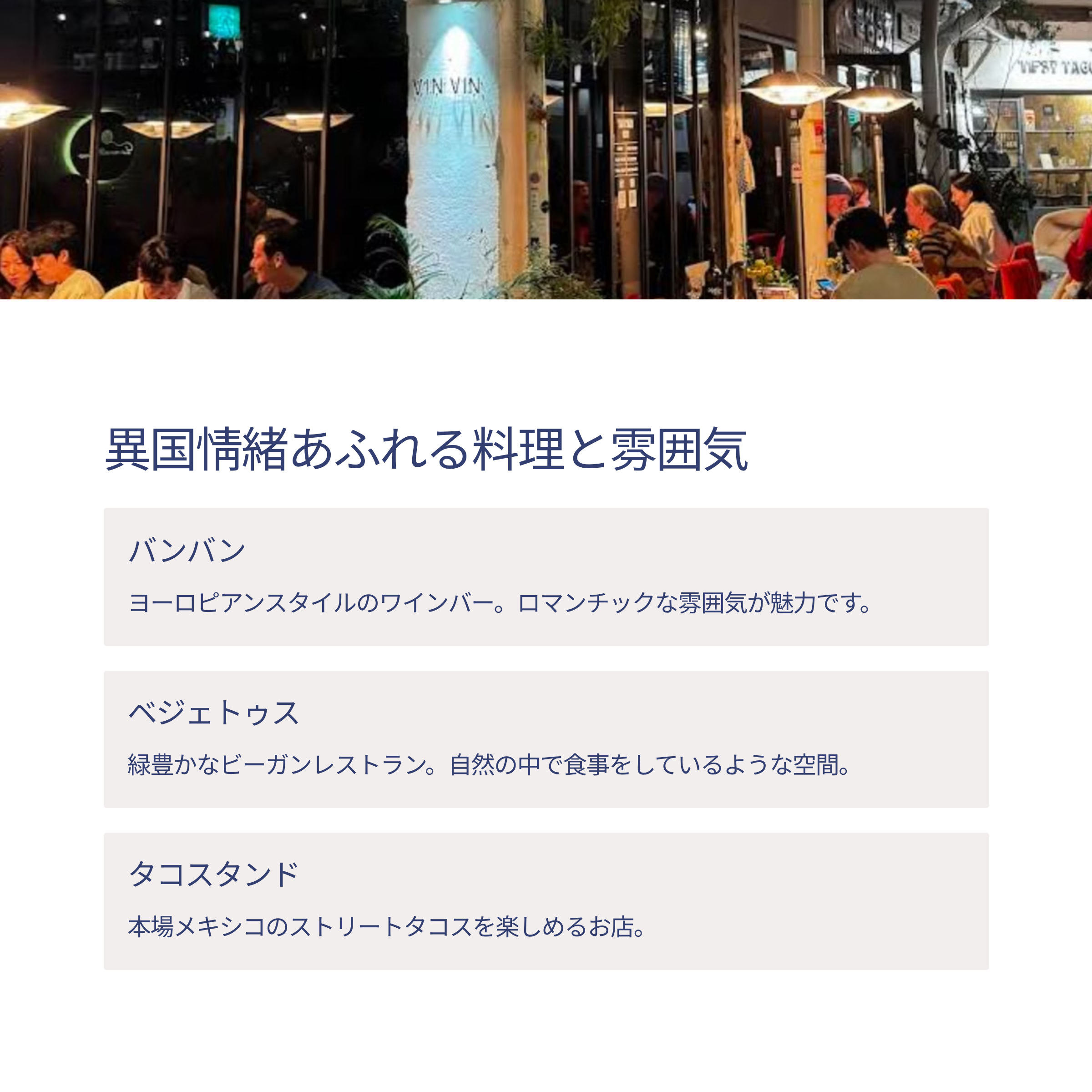 2. 異国情緒あふれる料理と雰囲気 🌏