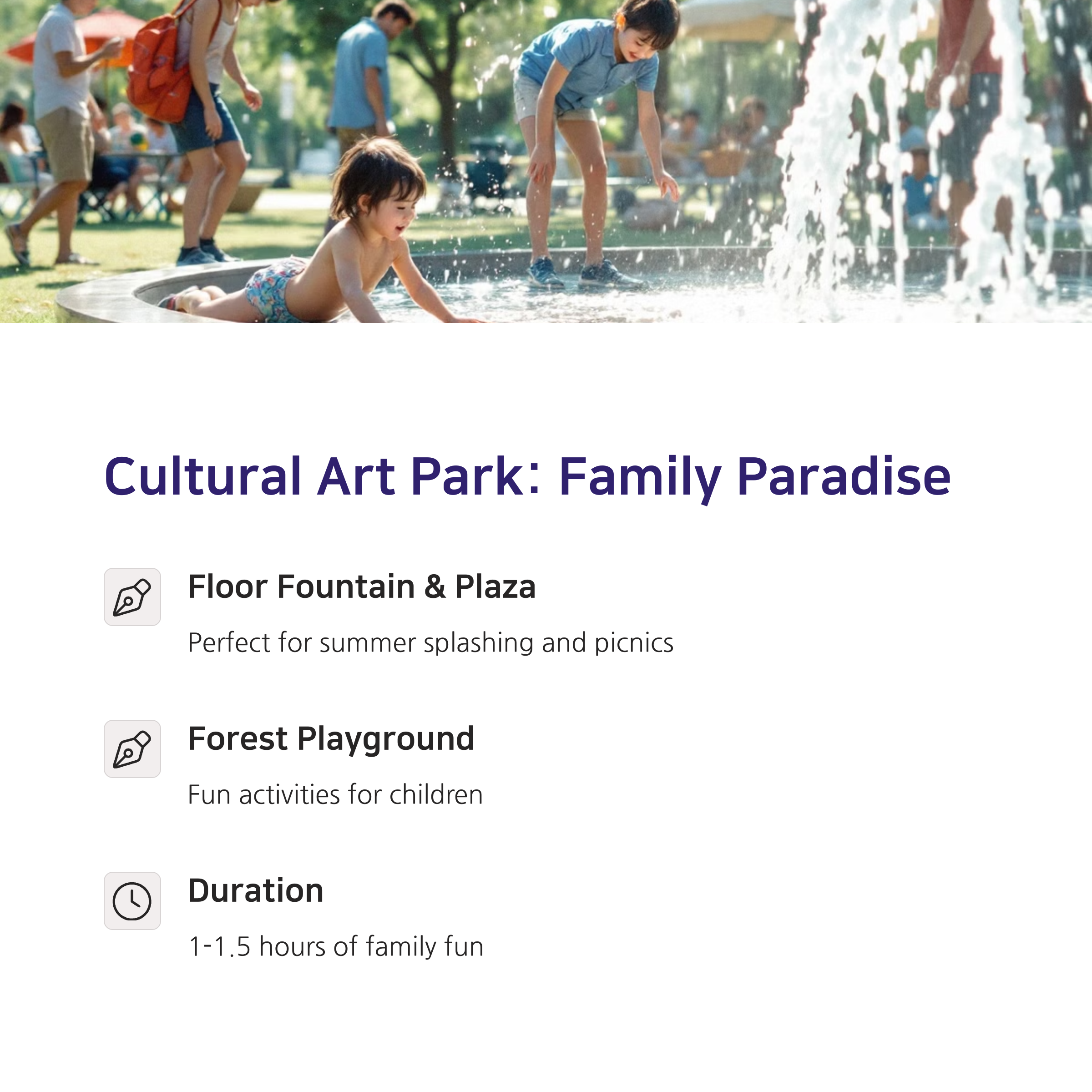 🔹 Recommended Route: Seoul Forest Plaza → Floor Fountain (summer) → Outdoor Stage → Forest Playground