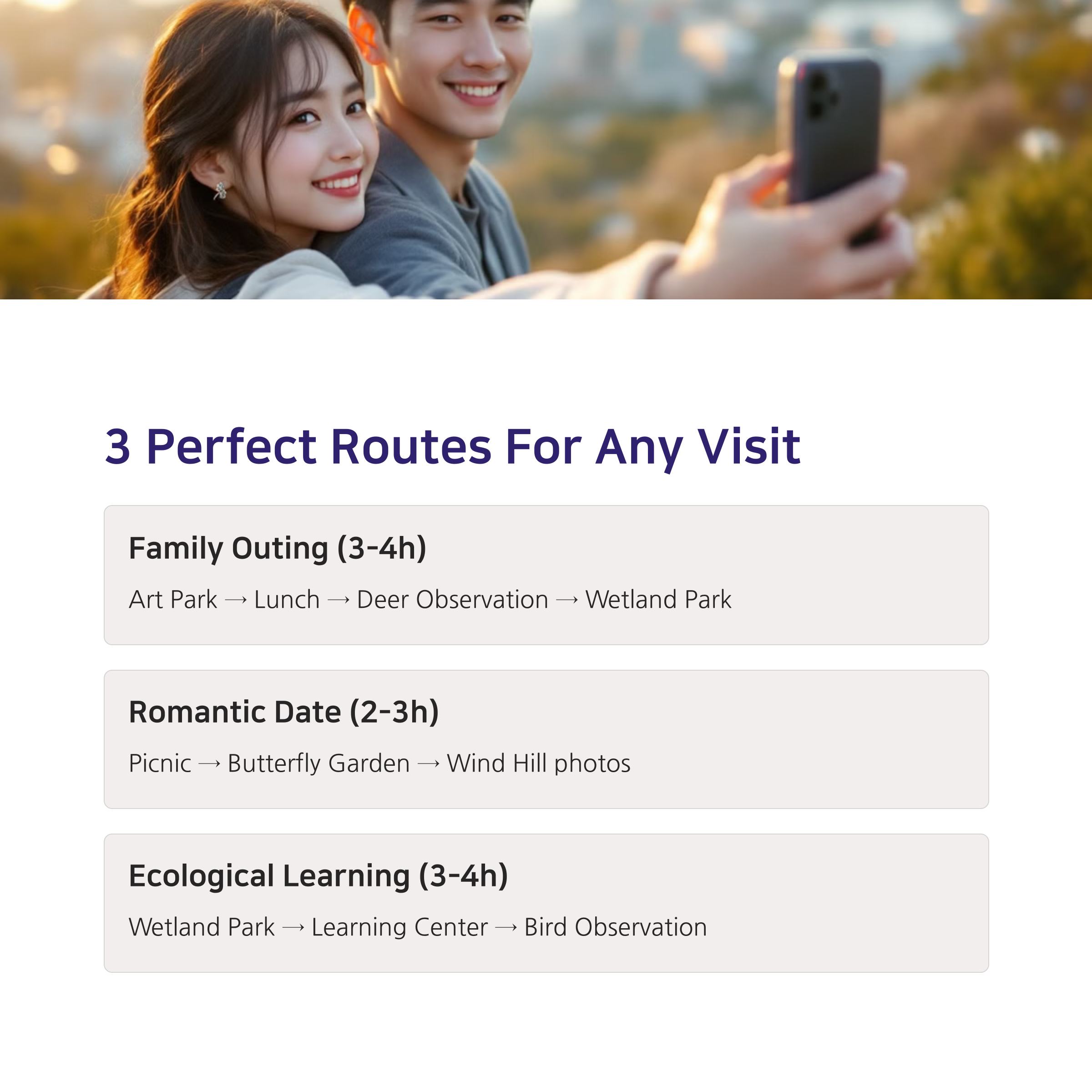 🔹 Recommended Route: Ecological Forest Entrance → Deer Habitat → Wind Hill → Han River Riverside Park