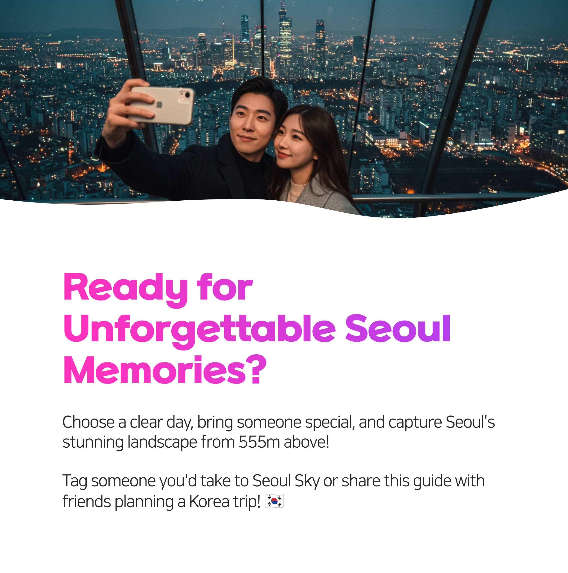 Choose a clear day, bring someone special, and create lasting memories as you take in Seoul's stunning views! We hope this guide helps make your visit to Lotte Tower Observatory amazing. Enjoy your trip! 😊