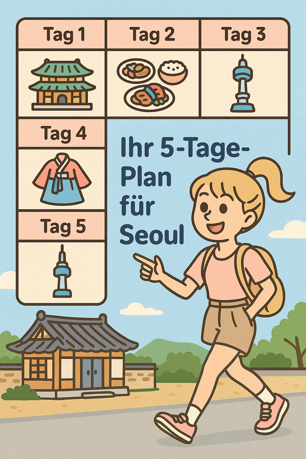 Von königlichen Palästen über moderne Viertel bis hin zu authentischem koreanischem Essen und nächtlichen Aussichten – dieses 5-Tage-Programm zeigt Ihnen das Beste von Seoul.